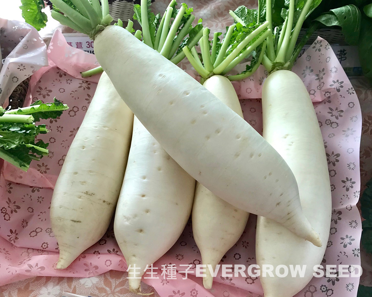 Uniform elongate root 24 x 8 cm, wt. 0.8-1.0 kg. Smooth white few scars pretty looking appearance.